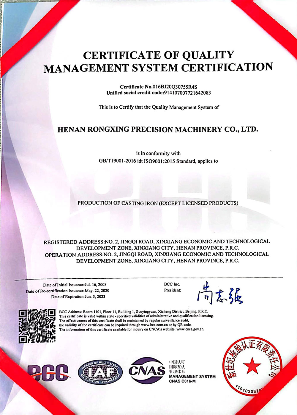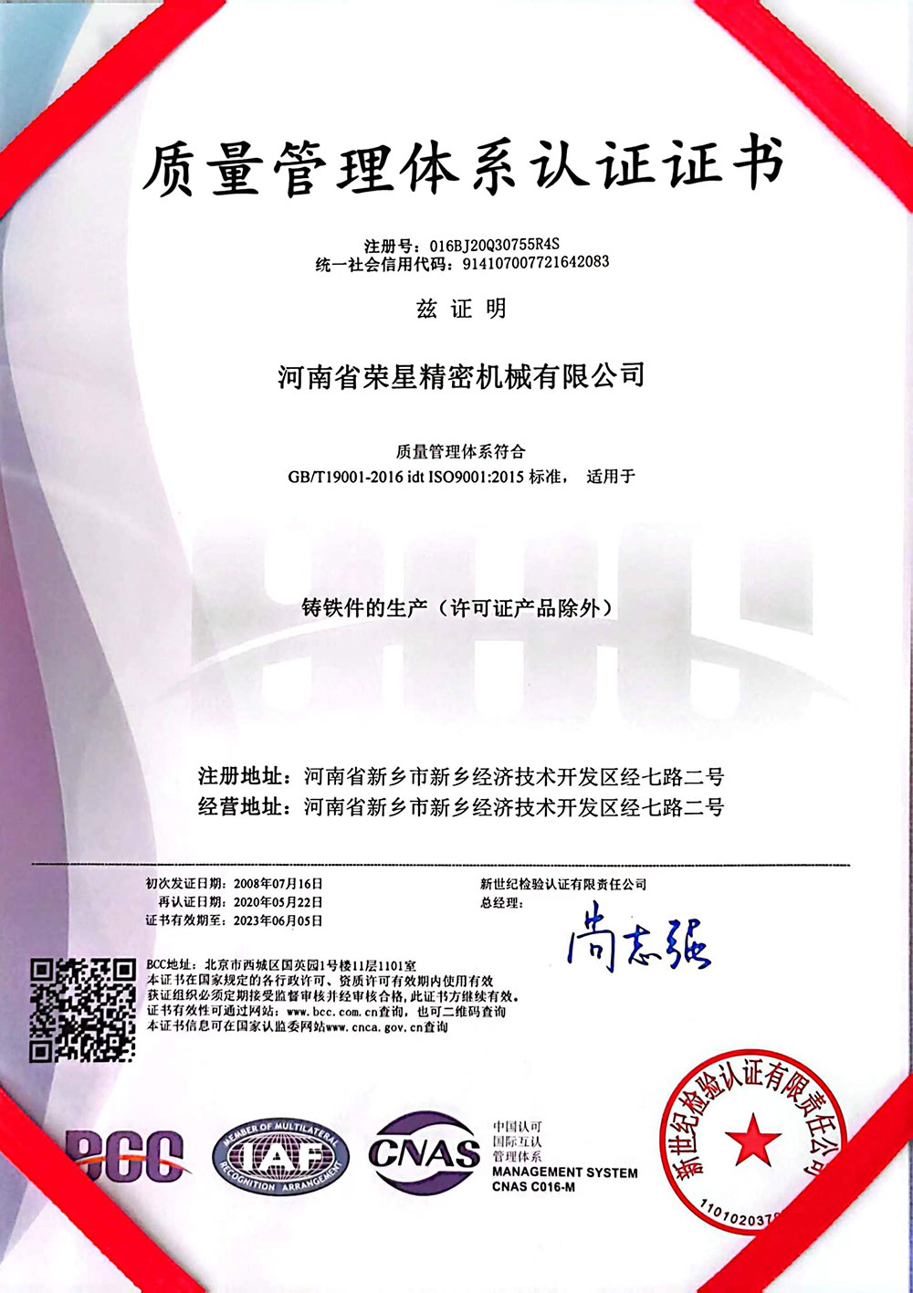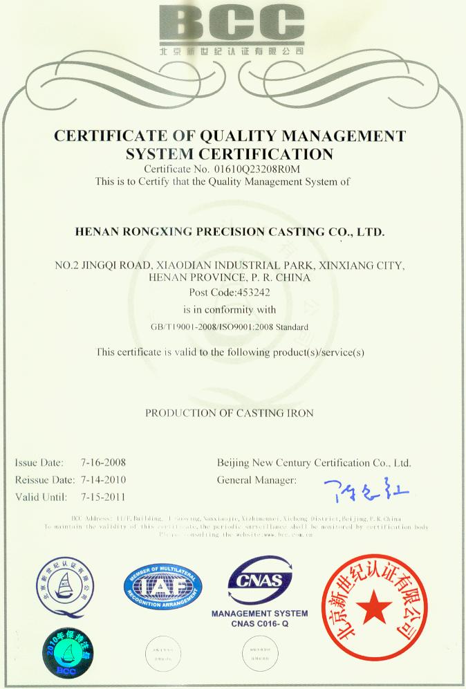 質(zhì)量管理體系認(rèn)證證書-英文